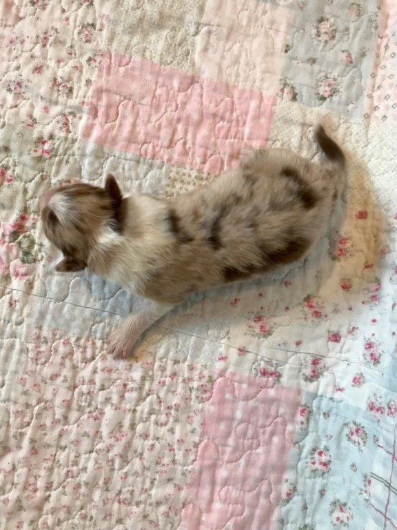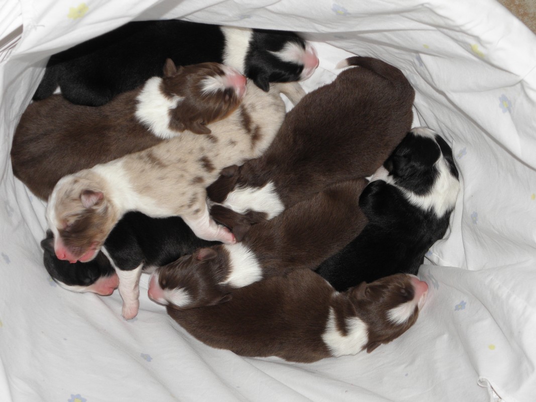 VRH „CH“Dne 31.3.2020 se u nás narodilo sedm šťeňátek v barvách black tri, red tri, red merle a blue merle.Štěňátka se narodila s dlouhými ocásky.