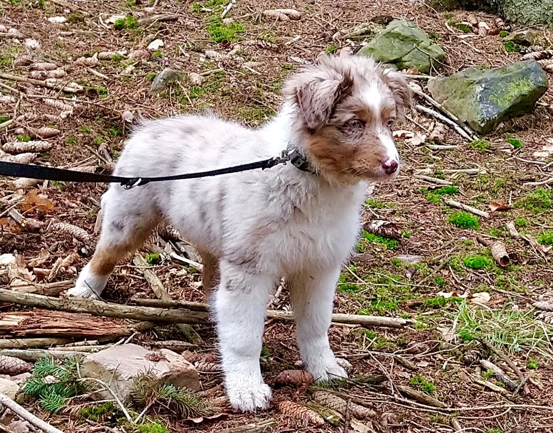 Pyšní se výborným zdravím a vynikajícím pigmentem. plnochrupý, nůžkový skus DNA CEA +/+ DNA PRA-prcd +/+ DNA HSF4 +/+ DNA MDR1 +/+ vyšetření očí negativní 2020 RTG DLK 0/0 RTG DKK B/B Laceypohlaví: pesbarva: red merle, bílé znaky, pálení ocas: přirozeně dlouhý REZERVOVANÝ